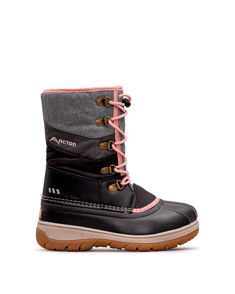 Ces bottes noir et rose gardent les pieds bien au chaud tout au long de l’hiver. Leur conception robuste protège efficacement contre la neige et l’humidité. Faciles à ajuster grâce à leur laçage pratique, elles offrent un confort durable au quotidien. Avec Acton, vos enfants profitent d’un style coloré et d’une protection fiable pour l’hiver.