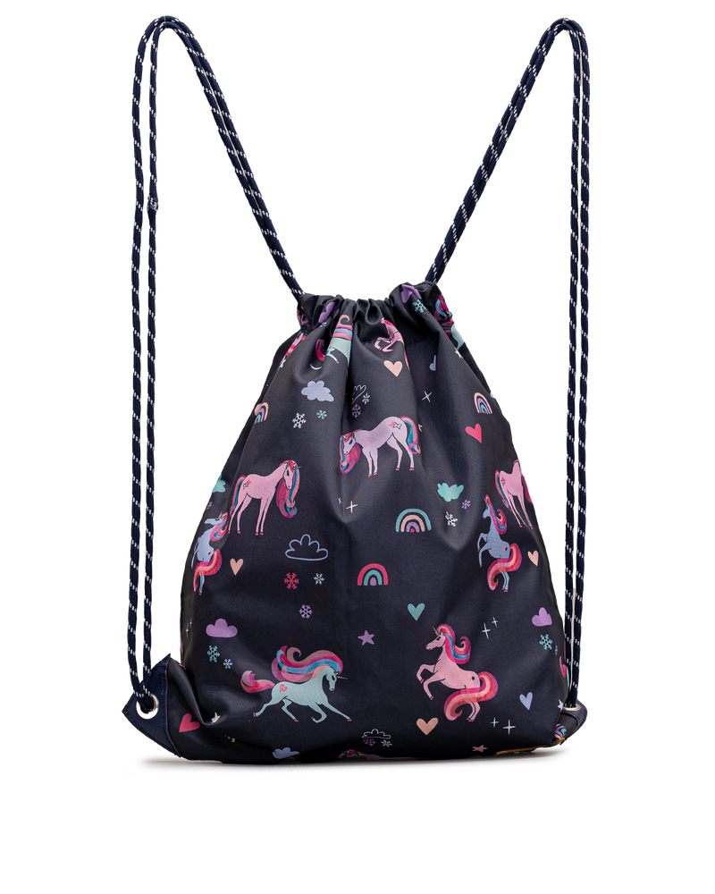 Ce sac à cordons Deux par Deux bleu et rose plaira aux enfants avec ses jolies licornes et ses couleurs vives. Léger et pratique, il s’ouvre et se referme facilement grâce aux cordelettes. Parfait pour les activités sportives ou les petites sorties. Un choix magique pour les jeunes rêveurs.