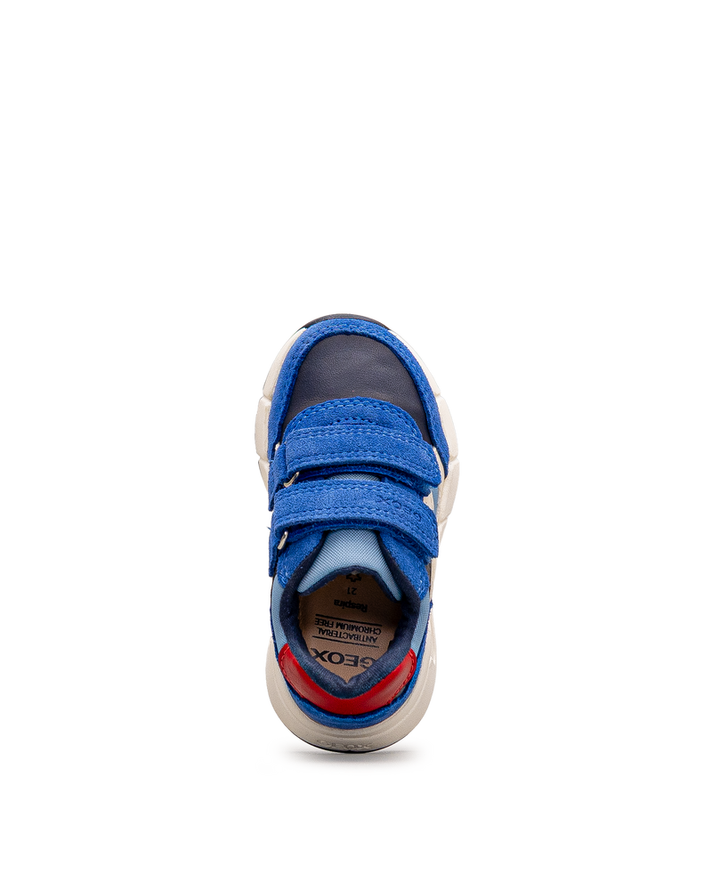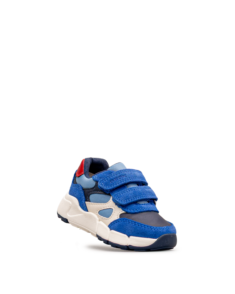 Ces chaussures Geox bleu offrent une stabilité fiable pour accompagner les explorations. Leur construction respirante et leur semelle amortissante favorisent un confort durable. Faciles à ajuster grâce aux bandes velcro, elles s’adaptent à tous les petits pieds. Un modèle sportif et sécuritaire signé Geox.