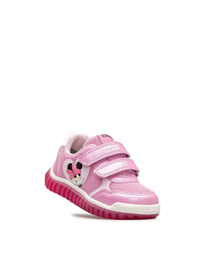 Ces chaussures Geox roses avec lumières intégrées charment par leur design inspiré de Minnie. Leur semelle souple et leur maintien ajusté assurent un confort optimal. Les fermetures à velcro facilitent l’enfilage au quotidien. Un modèle à la fois amusant et fonctionnel pour les jeunes enfants.
