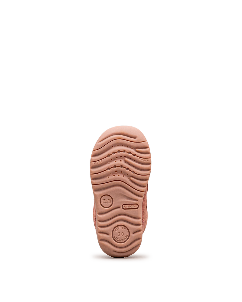 Ces chaussures rose Geox offrent un soutien doux pour les premiers pas de bébé. Leur semelle souple accompagne chaque mouvement naturellement. Faciles à enfiler grâce aux attaches velcro, elles assurent un bon maintien. Un modèle charmant et pratique pour les petites exploratrices.