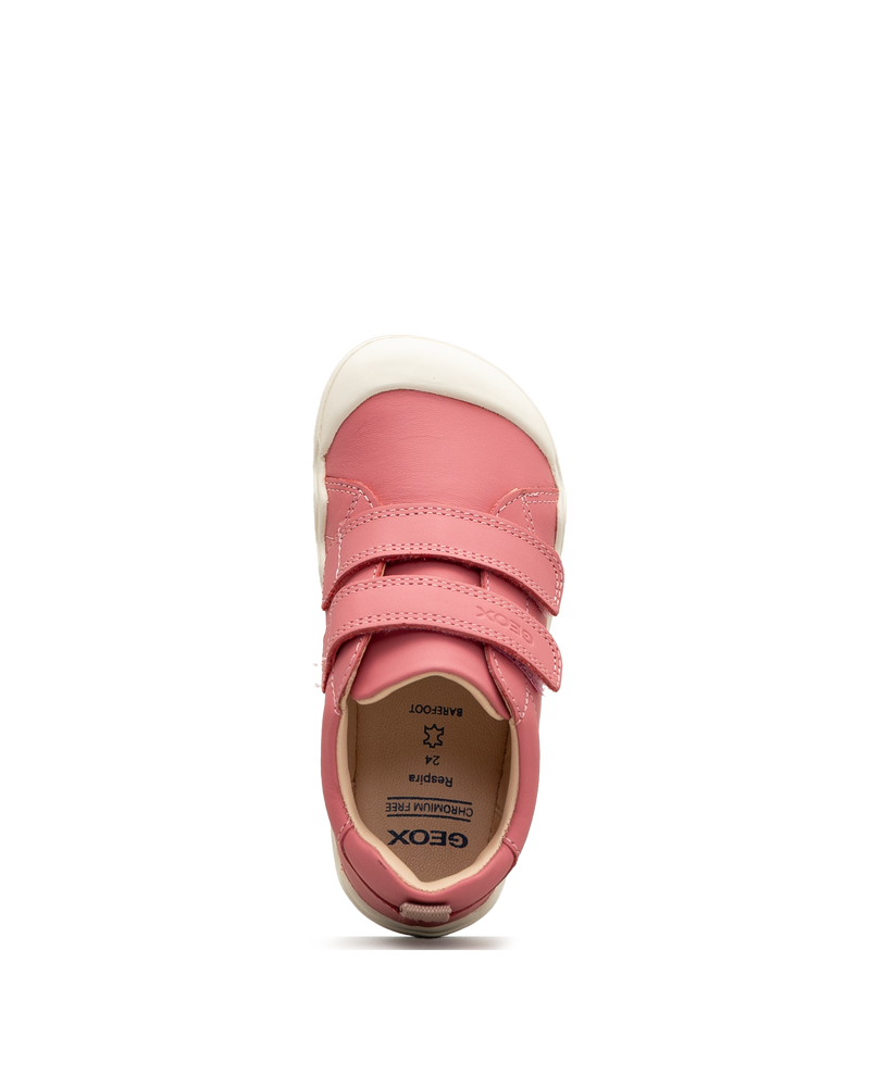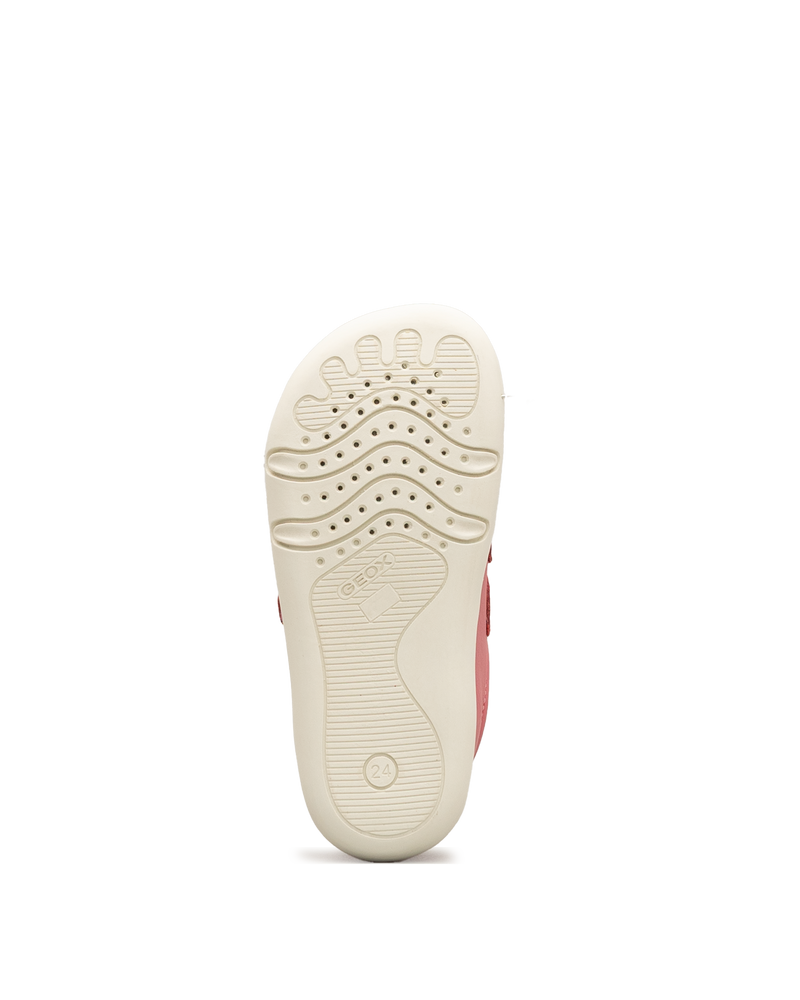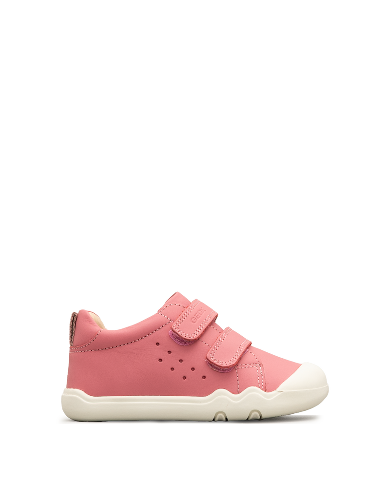 Ces chaussures pour bébé offrent un excellent maintien tout en favorisant la respiration du pied. Le bout renforcé protège les petits orteils durant les explorations. Dotées de deux velcros, elles sont faciles à enfiler et à ajuster. Geox propose ici une chaussure pratique et confortable pour les premiers pas.