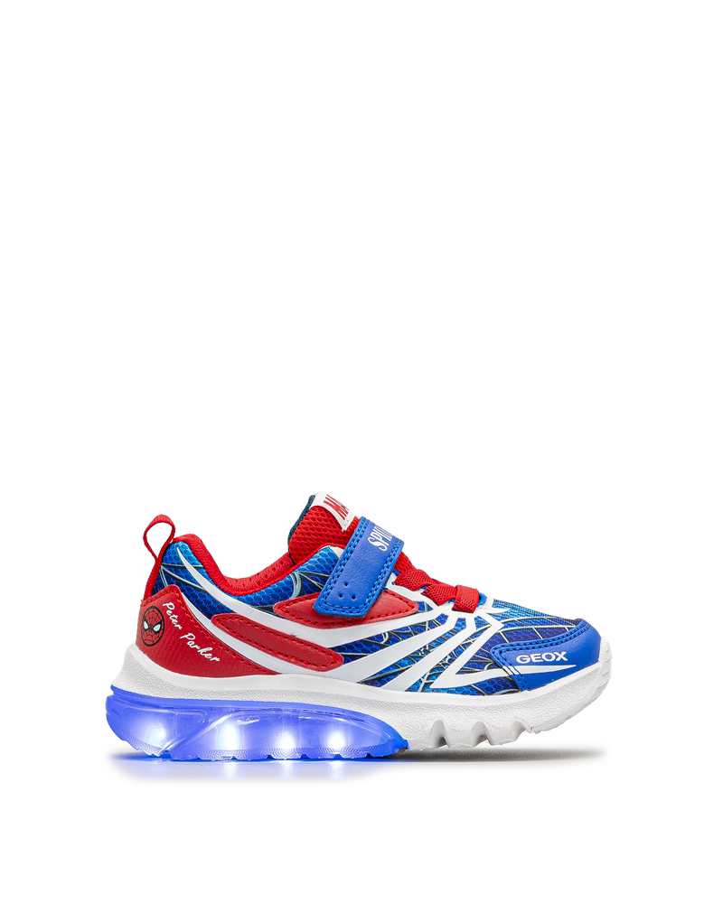 Ces chaussures lumineuses rouges et bleues séduisent par leur style énergique et leur clin d’œil à Spider-Man. Les lumières intégrées ajoutent une touche ludique à chaque pas. Dotées d’une fermeture facile et d’un bon maintien, elles sont idéales pour bouger en toute liberté. Geox accompagne les petits héros dans toutes leurs aventures.