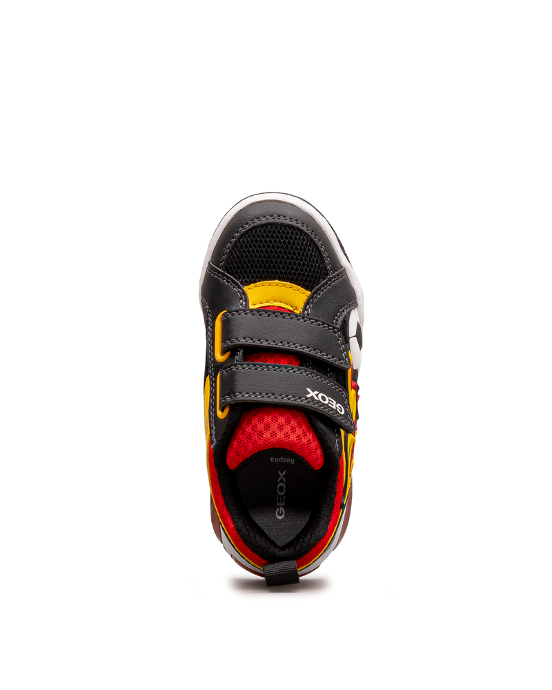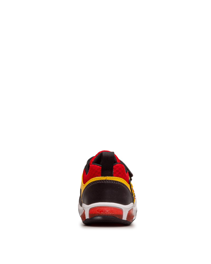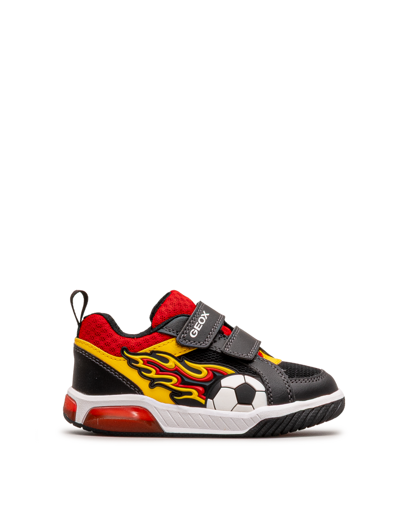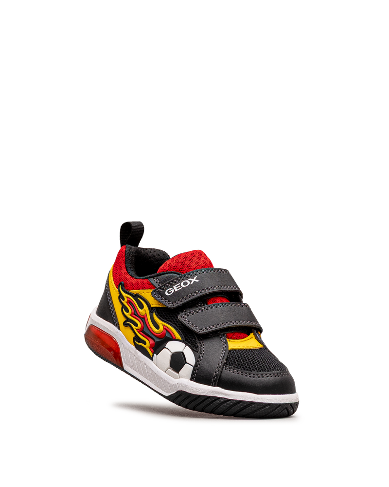 Ces chaussures soccer affichent un design dynamique pour les jeunes sportifs. Leurs flammes colorées et leur ballon de soccer apportent énergie et style. Les deux bandes velcro assurent un ajustement sécurisé et rapide. La technologie respirante Geox favorise le confort lors des activités. Idéales pour le terrain et les jeux. Un modèle sportif et audacieux signé Geox.
