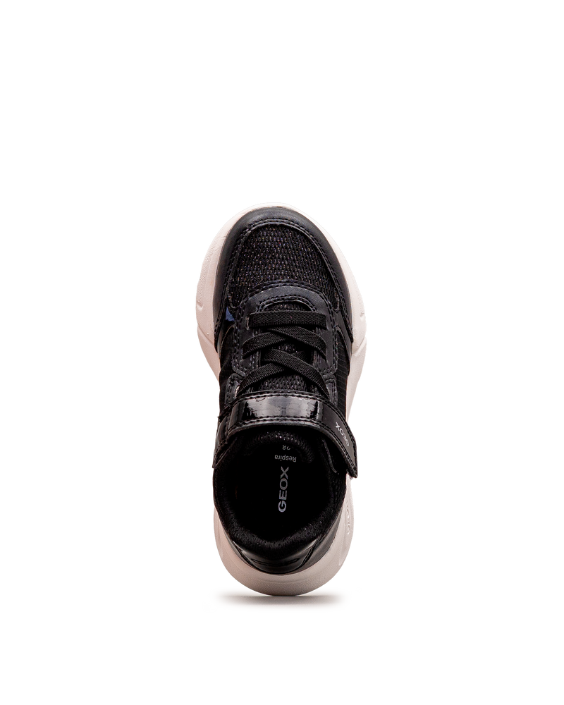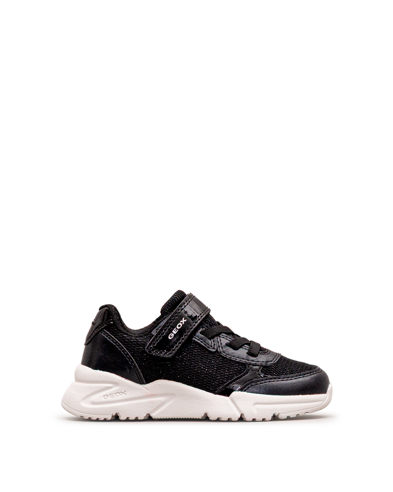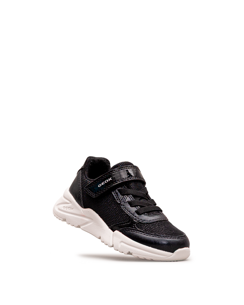 Ces chaussures Geox noires sont parfaites pour les enfants actifs au style affirmé. Leur semelle respirante favorise une aération continue du pied. Faciles à enfiler grâce à leur bande autoagrippante, elles soutiennent bien le pied. Un modèle polyvalent pour l’école, les sorties ou les jeux extérieurs.