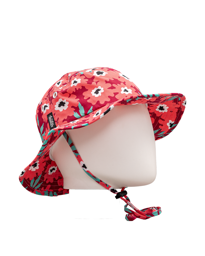 Ce chapeau Headster combine un motif floral éclatant à une protection solaire optimale. Sa large bordure et son cordon ajustable assurent un maintien confortable. Léger et respirant, il est idéal pour les journées ensoleillées. Un choix stylé et fonctionnel pour les sorties estivales des enfants.