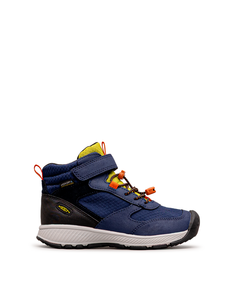 Ces bottes marines et colorées affichent un design robuste pour les aventures extérieures. Leur construction imperméable protège les pieds des intempéries. Les lacets contrastés et la fermeture velcro assurent un ajustement sécurisé. Le bout renforcé et la semelle adhérente offrent protection et stabilité sur terrains variés. Parfaites pour la randonnée et les explorations. Un modèle durable et performant signé Keen.