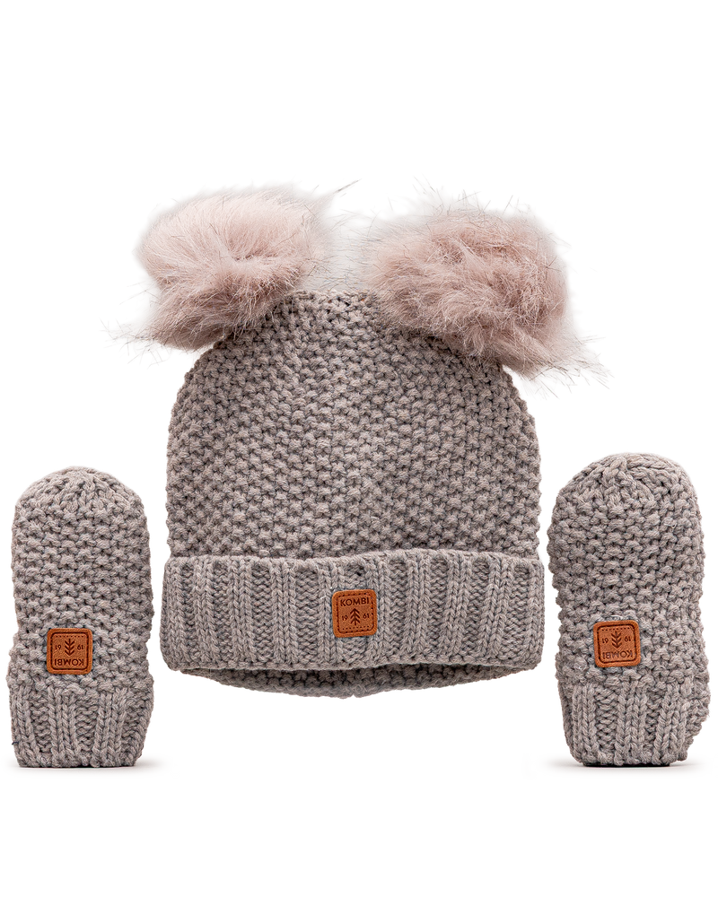 Cet ensemble gris pâle est parfait pour garder les bébés au chaud tout l’hiver. La tuque à pompons ajoute une touche mignonne et tendance. Les mitaines assorties offrent douceur et confort aux petites mains. Avec Kombi, les tout-petits profitent d’une protection complète et douillette durant la saison froide.