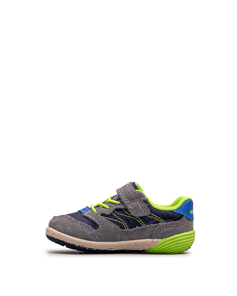 Ces chaussures grises et vertes affichent un design sportif pour les tout-petits. Leurs touches colorées marines et lime apportent dynamisme et fraîcheur. La fermeture velcro assure un enfilage rapide et sécurisé. La construction légère favorise les mouvements naturels. Idéales pour les jeux et les activités quotidiennes. Un modèle pratique et énergique signé Merrell.