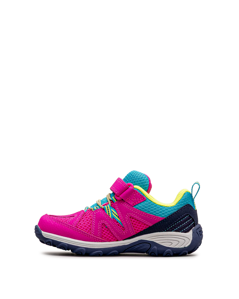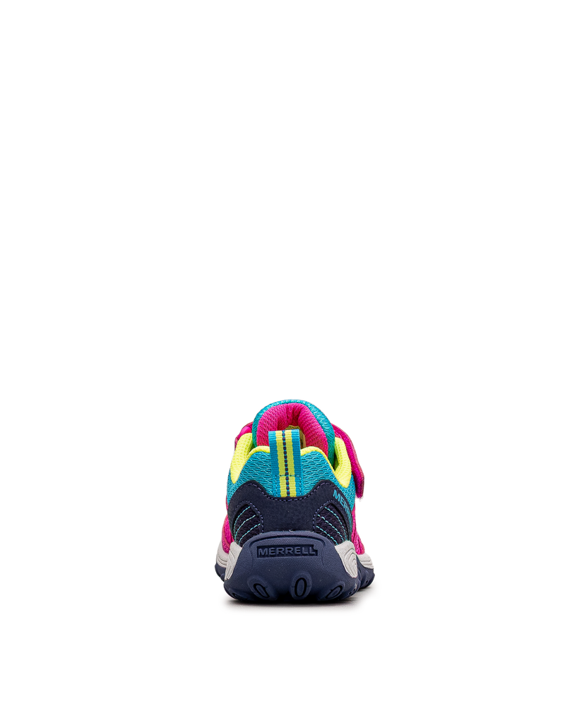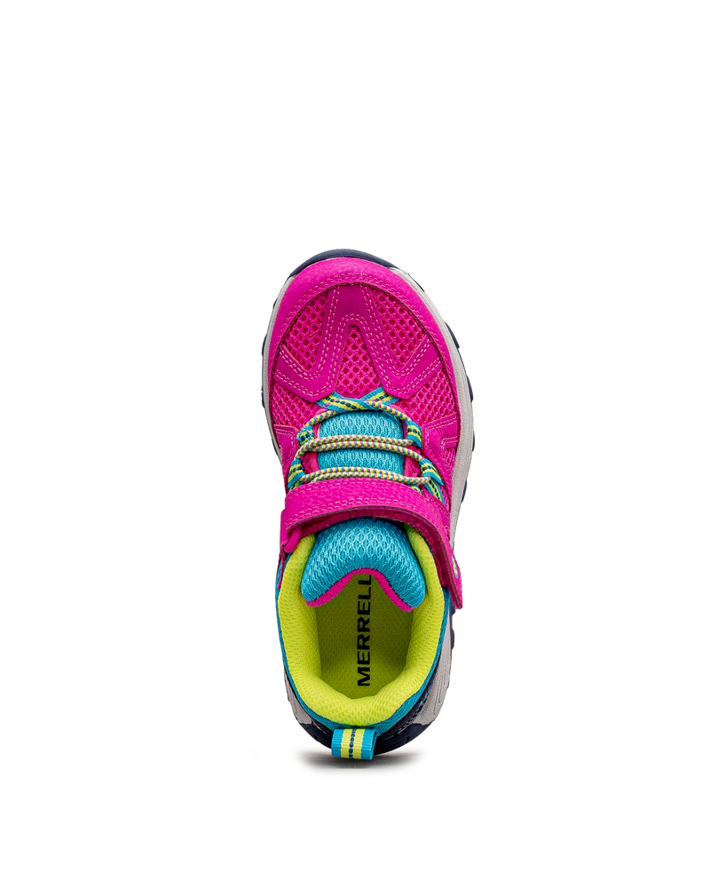Ces chaussures roses affichent un design coloré pour les jeunes aventuriers. Leurs touches turquoise et lime apportent fraîcheur et dynamisme. La fermeture velcro assure un ajustement sécurisé et facile. La construction respirante favorise le confort lors des activités. Idéales pour les randonnées et les jeux extérieurs. Un modèle énergique et performant signé Merrell.