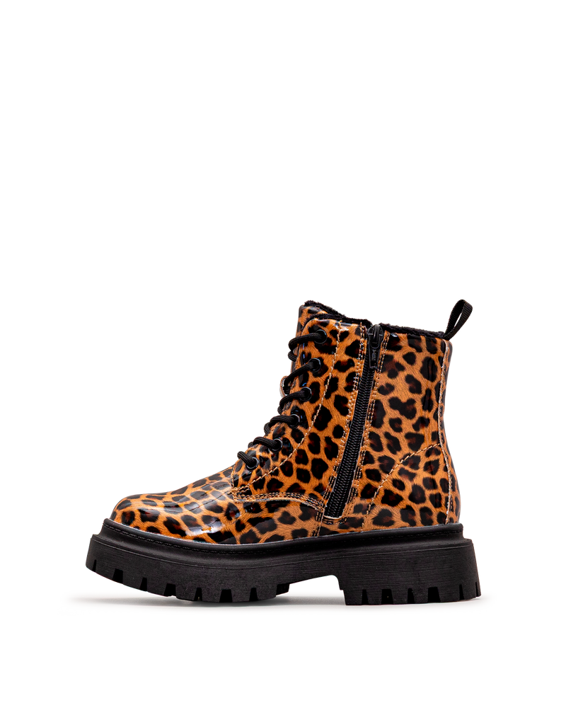 Ces bottillons léopard se distinguent par leur style audacieux et unique. Leur semelle épaisse assure une stabilité optimale et un confort durable. Faciles à ajuster grâce à leur laçage pratique, ils accompagnent les enfants dans toutes leurs activités. Un choix idéal pour allier mode et praticité avec Panda.