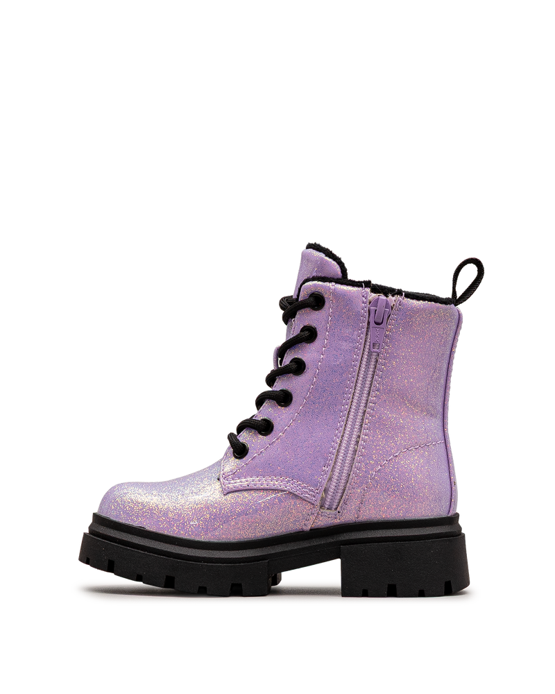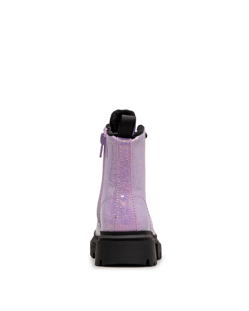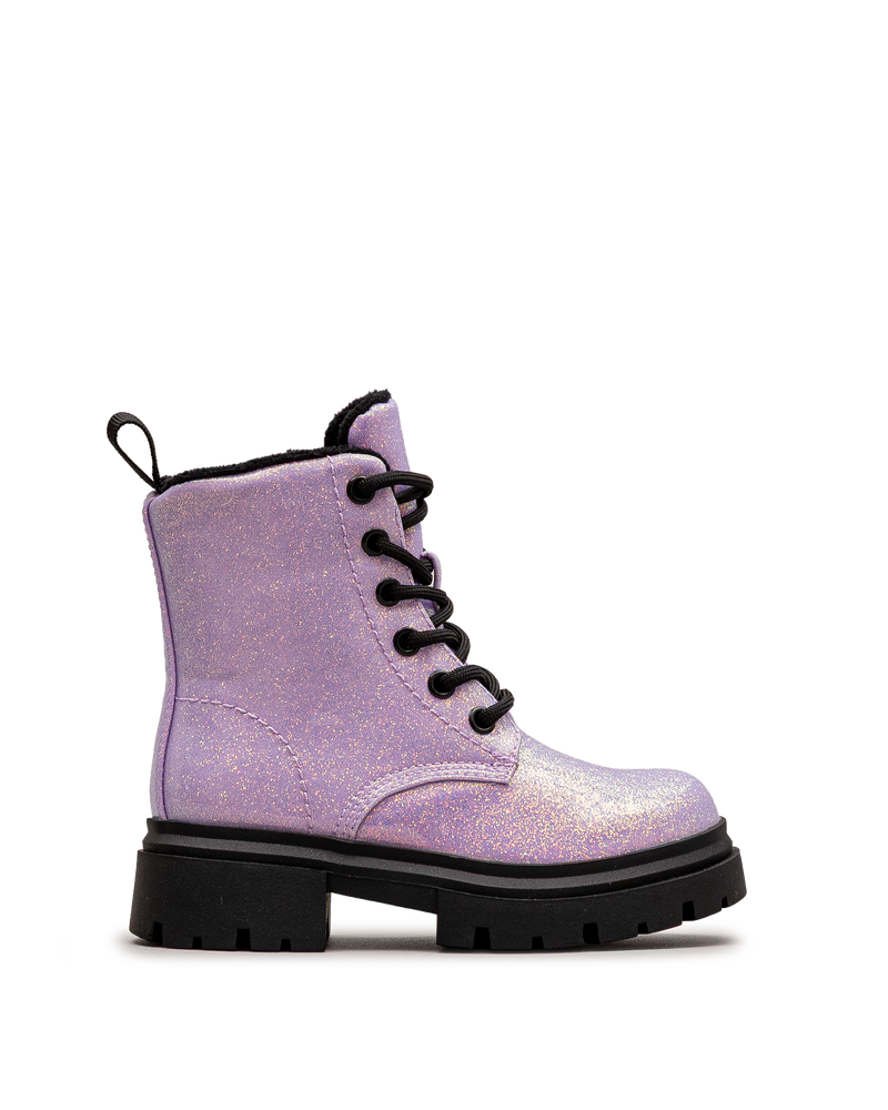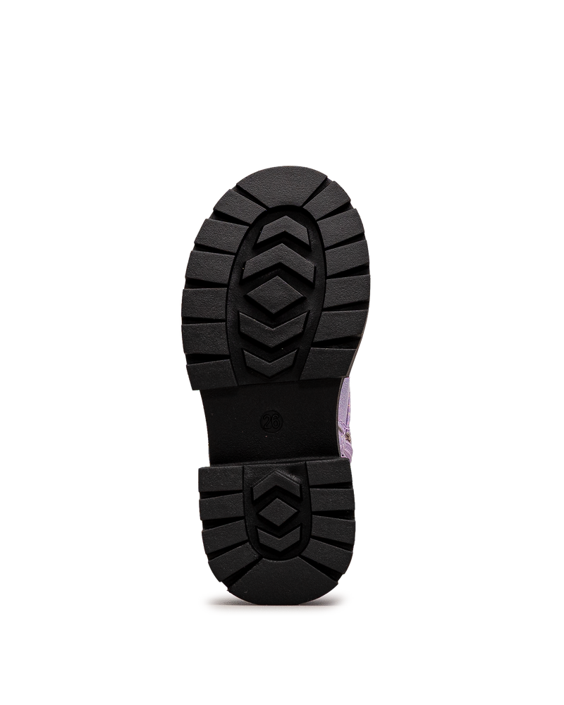 Ces bottes lavande affichent un design tendance pour les tout-petits et enfants. Leur finition paillettée brillante et leur silhouette moderne capte l'attention. Les lacets assurent un ajustement sécurisé. La semelle crantée robuste offre traction et durabilité. Idéales pour affirmer son style toute l'année. Un modèle audacieux et confortable signé Panda.