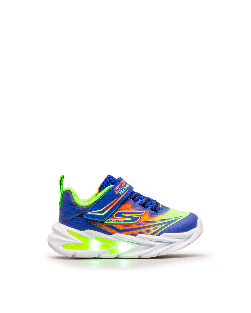 Ces chaussures bleues et lime se distinguent par leur style énergique et leurs lumières intégrées qui amusent les enfants à chaque pas. Leur semelle amortissante procure un confort supérieur et une grande stabilité. Faciles à enfiler grâce à la fermeture pratique, elles favorisent l’autonomie au quotidien. Un choix parfait pour allier plaisir, confort et la qualité Skechers.