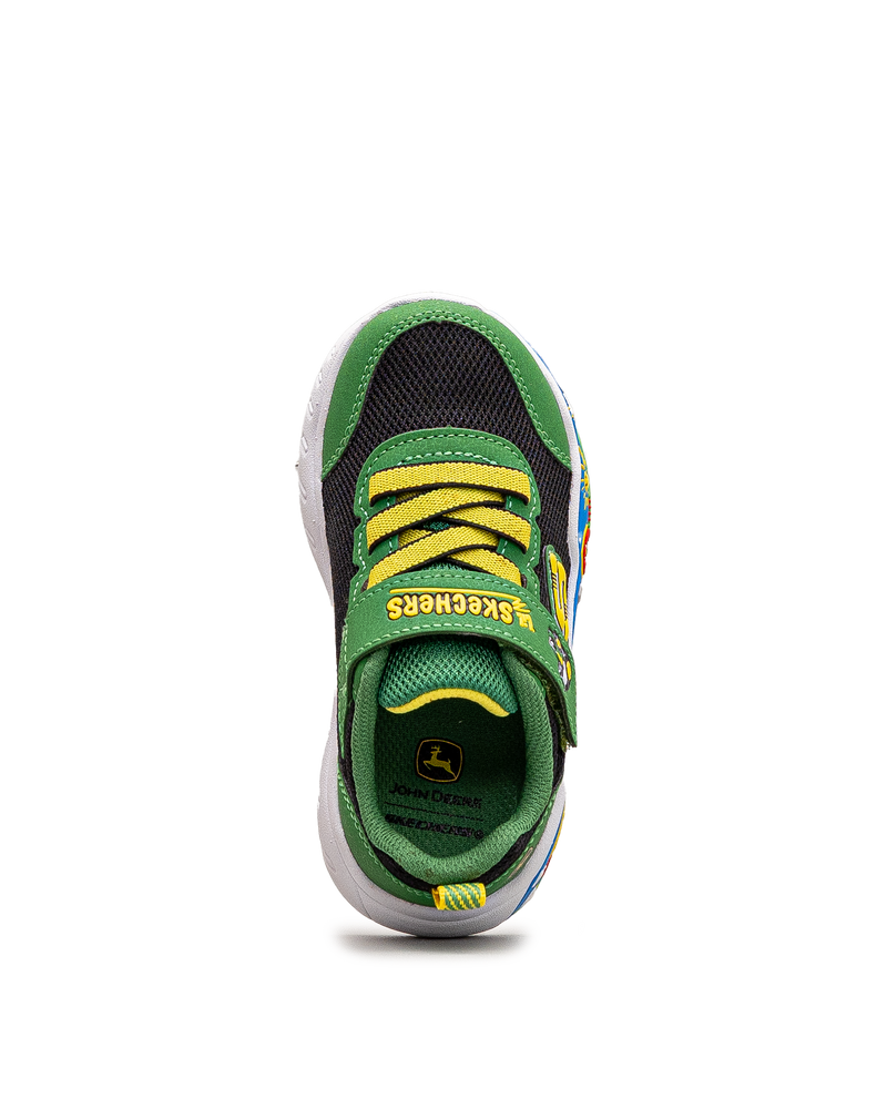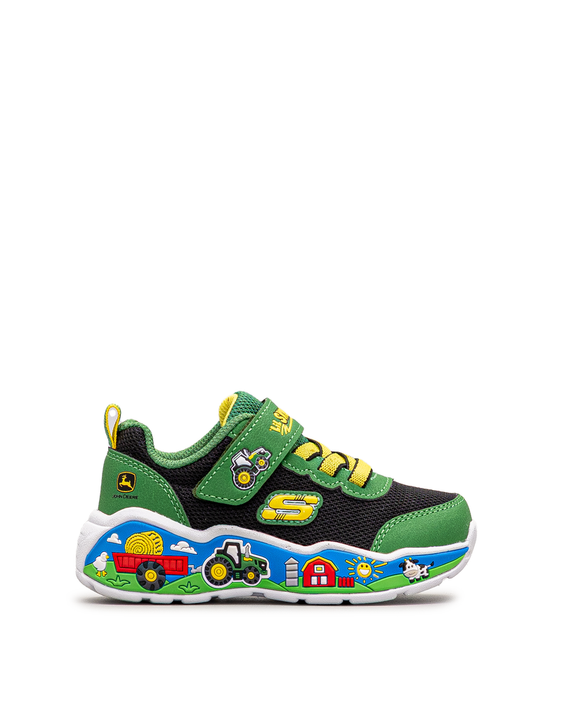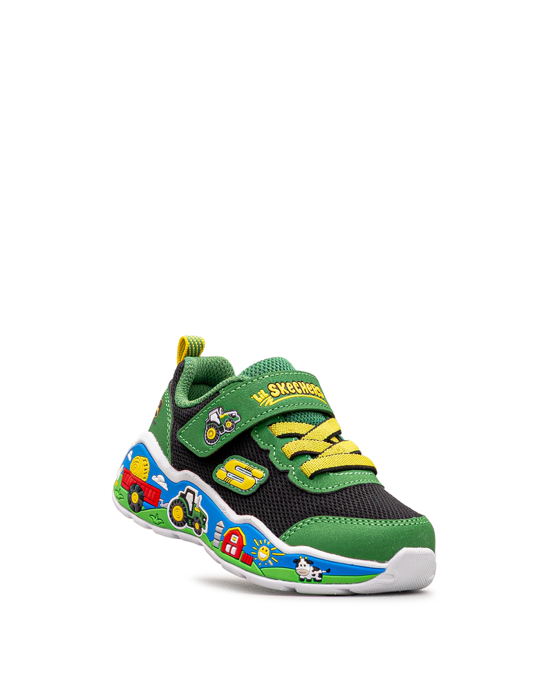 Ces chaussures vertes inspirées du monde agricole séduisent par leur look amusant. Leur design coloré stimule l’imaginaire tout en offrant stabilité et confort. Faciles à enfiler grâce à la fermeture velcro, elles soutiennent bien le pied. Une création unique de Skechers pour les jeunes amateurs de tracteurs.
