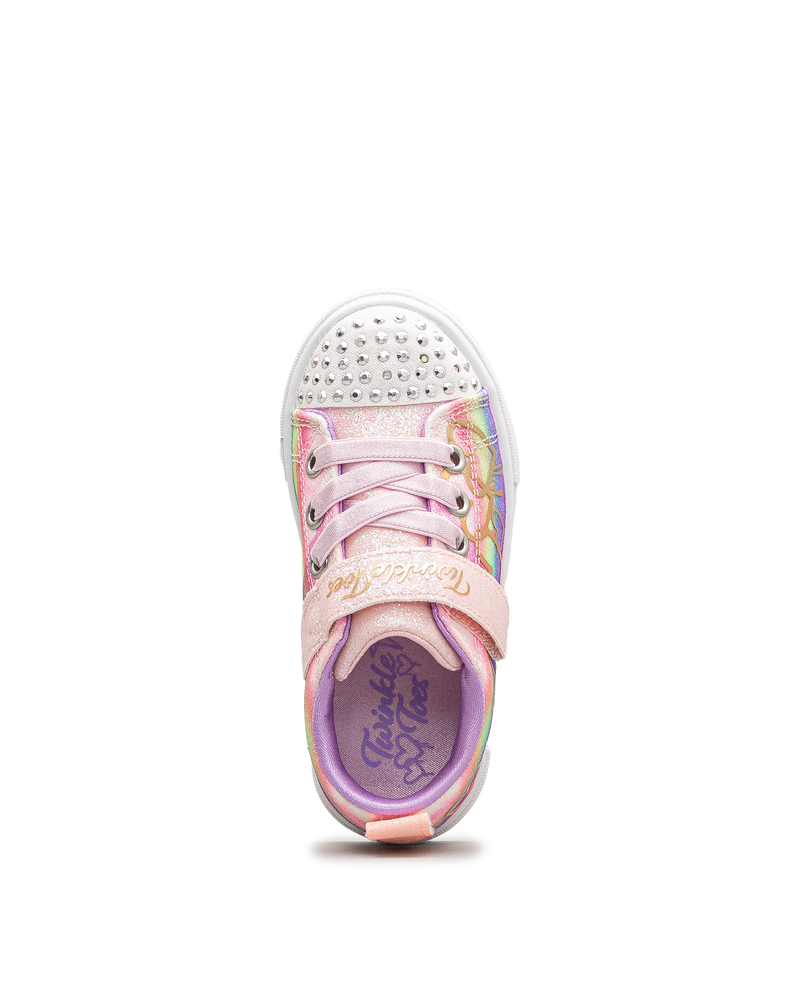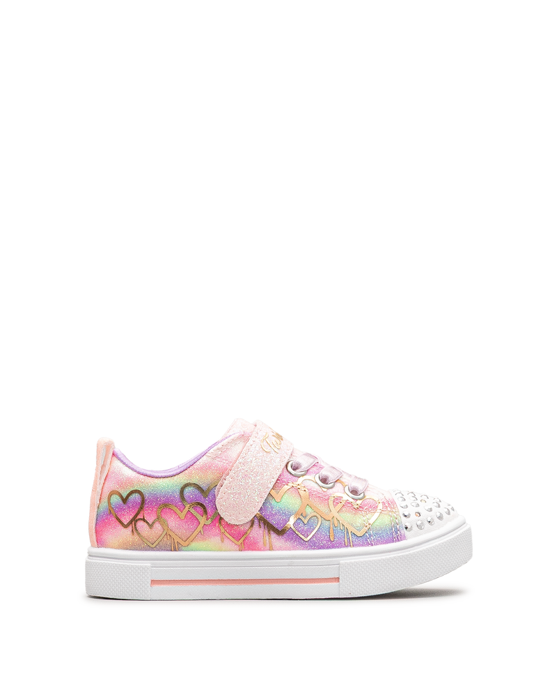 Ces chaussures Skechers pour tout-petits séduisent avec leurs cœurs irisés et leur semelle lumineuse. Leur finition scintillante attire les regards à chaque mouvement. Dotées d’une fermeture pratique, elles s’enfilent en un clin d’œil. Un modèle parfait pour les jeunes enfants qui adorent briller.