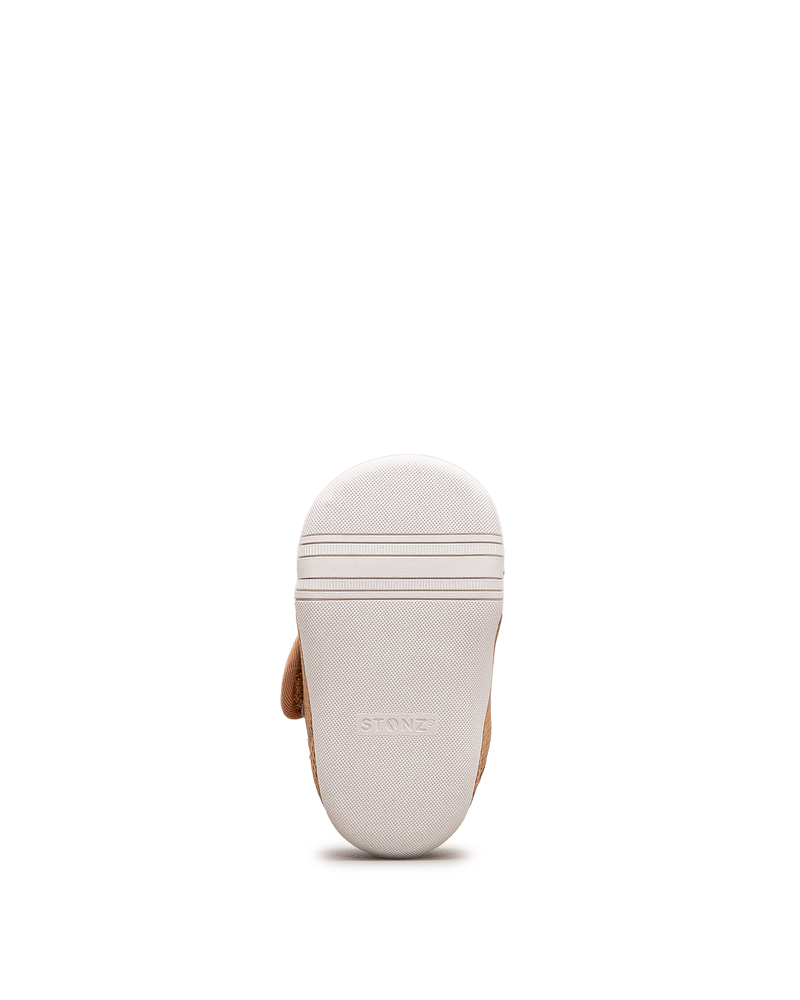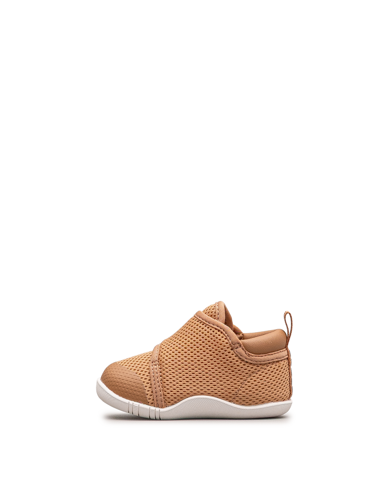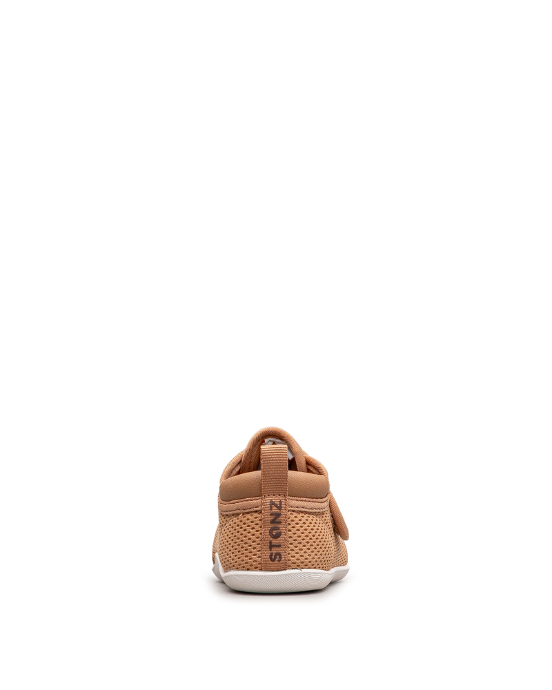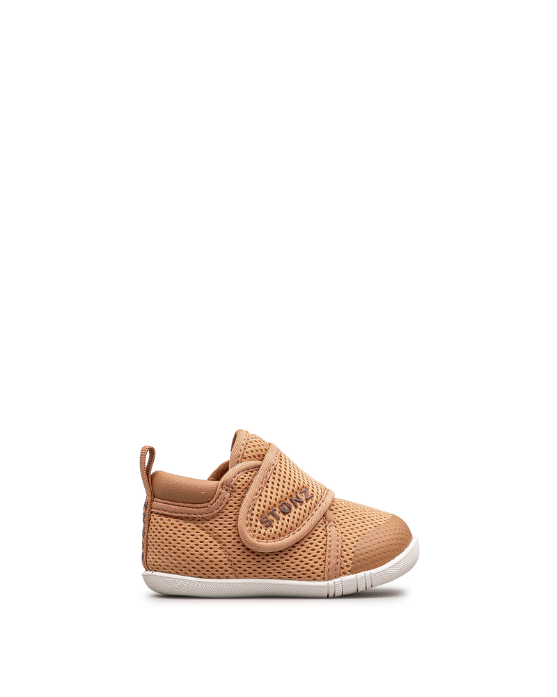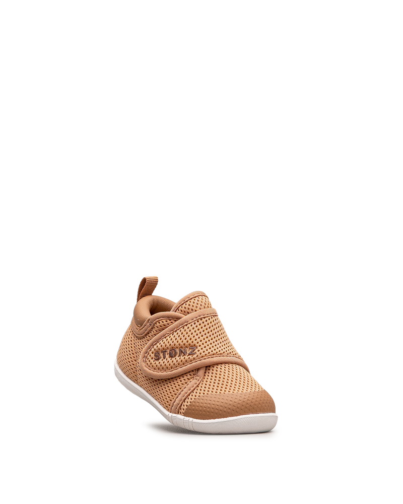 Ces chaussures souples couleur rouille affichent un design respirant pour les bébés. Leur construction légère en mesh favorise la circulation d'air. La fermeture velcro permet un ajustement facile et sécurisé. La semelle flexible accompagne les mouvements naturels du pied. Idéales pour les premiers pas et les découvertes intérieures. Un modèle confortable et adapté signé Stonz.