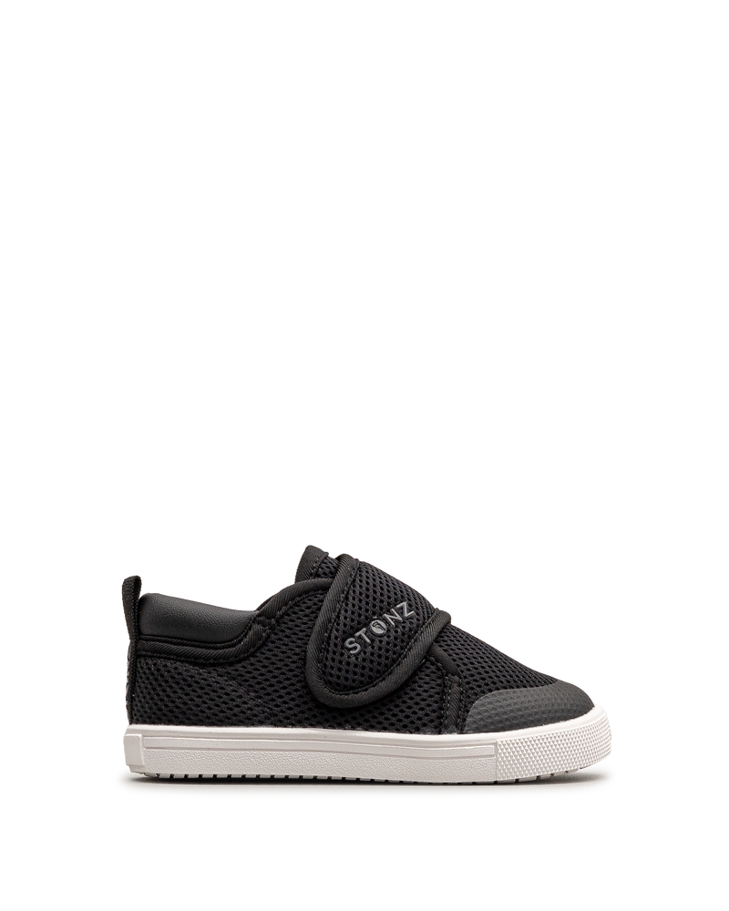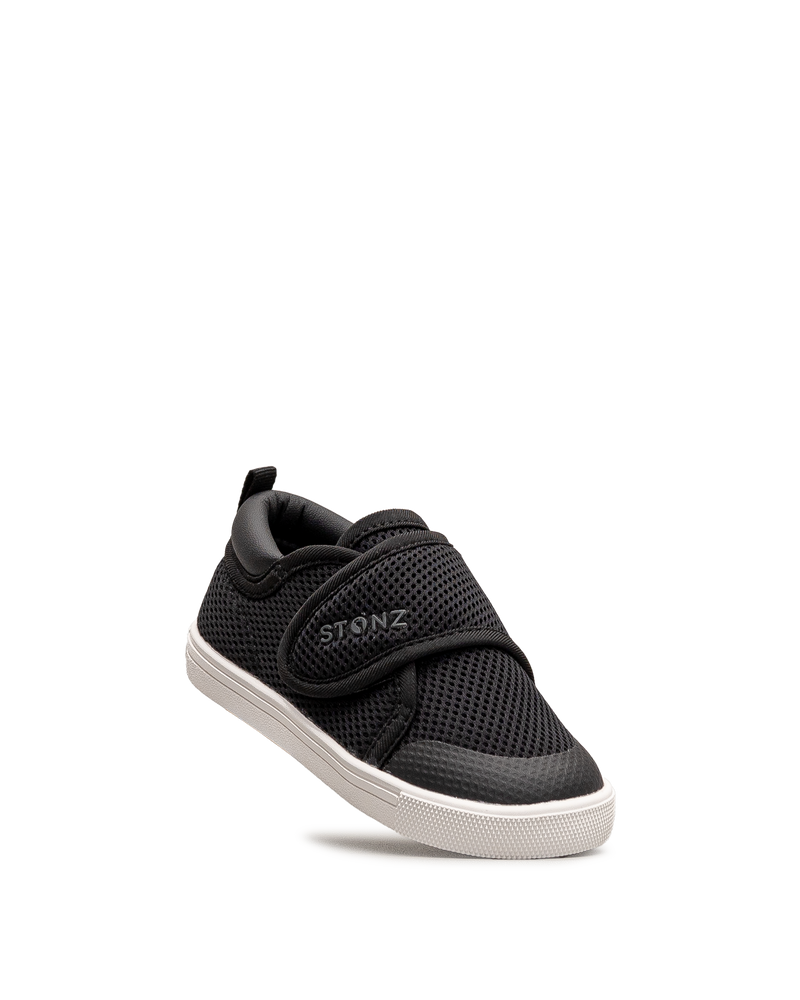 Ces souliers Stonz respirants accompagnent les tout-petits avec confort et stabilité. Leur teinte noire polyvalente s’agence facilement à toutes les tenues. Dotés d’une fermeture autoagrippante, ils sont pratiques et rapides à enfiler. Une solution idéale pour les enfants en pleine découverte.