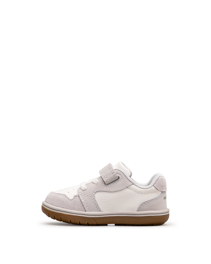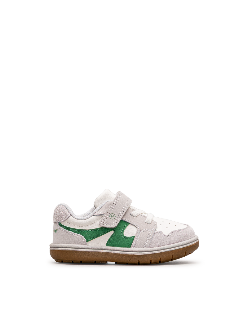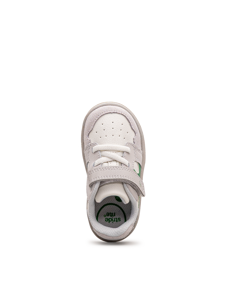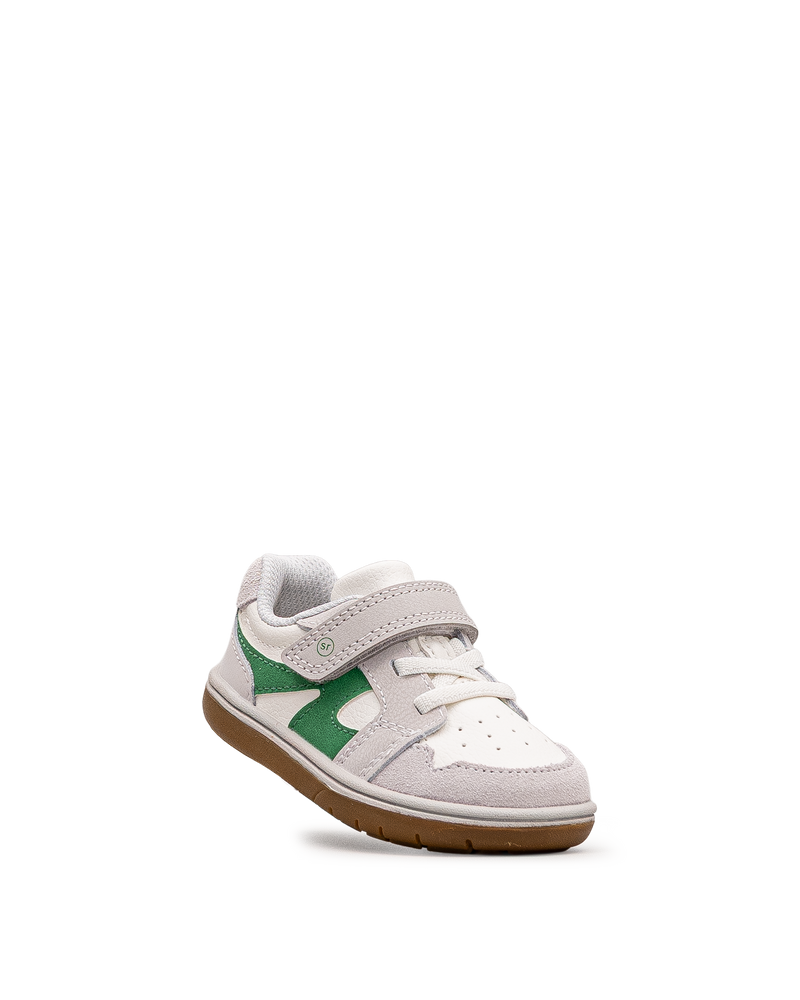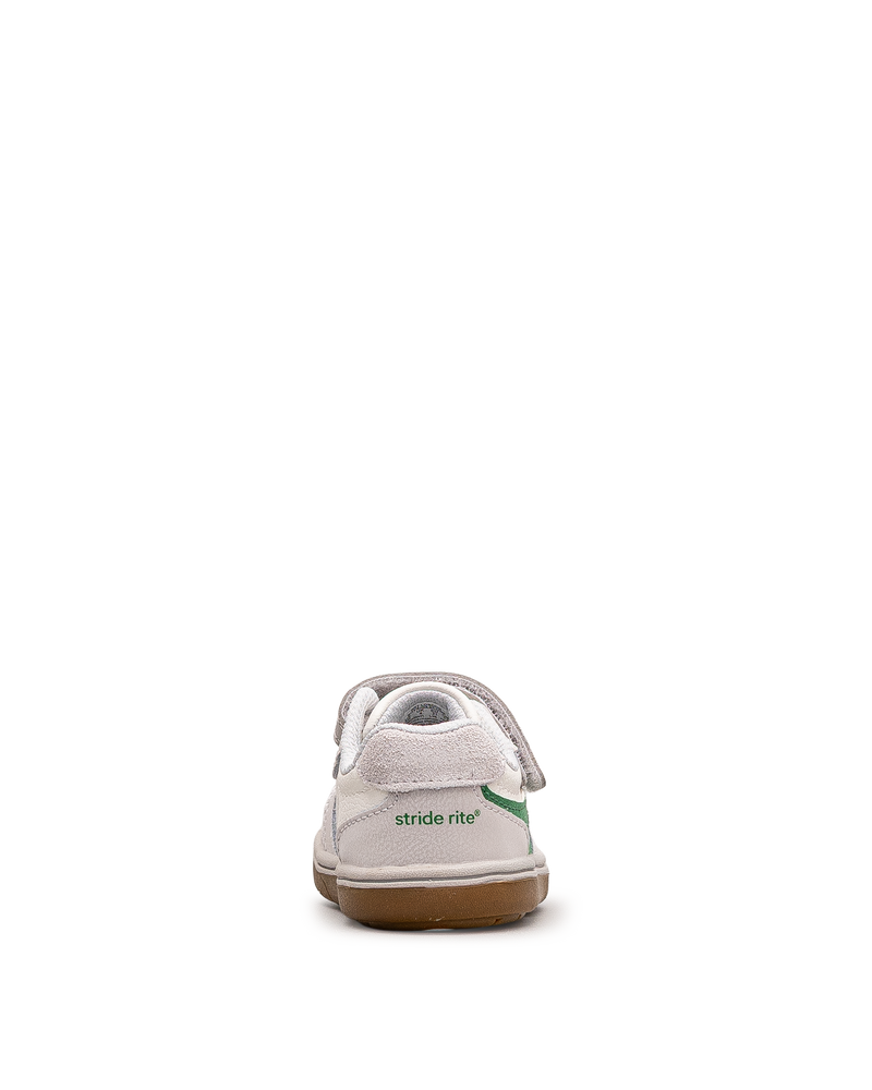 Ces chaussures blanches affichent un design sportif pour les tout-petits. Leurs touches vertes et grises apportent fraîcheur et dynamisme. La fermeture velcro assure un enfilage rapide et sécurisé. La construction robuste favorise la stabilité lors des activités. Idéales pour les jeux et les déplacements quotidiens. Un modèle polyvalent et confortable signé Stride Rite.