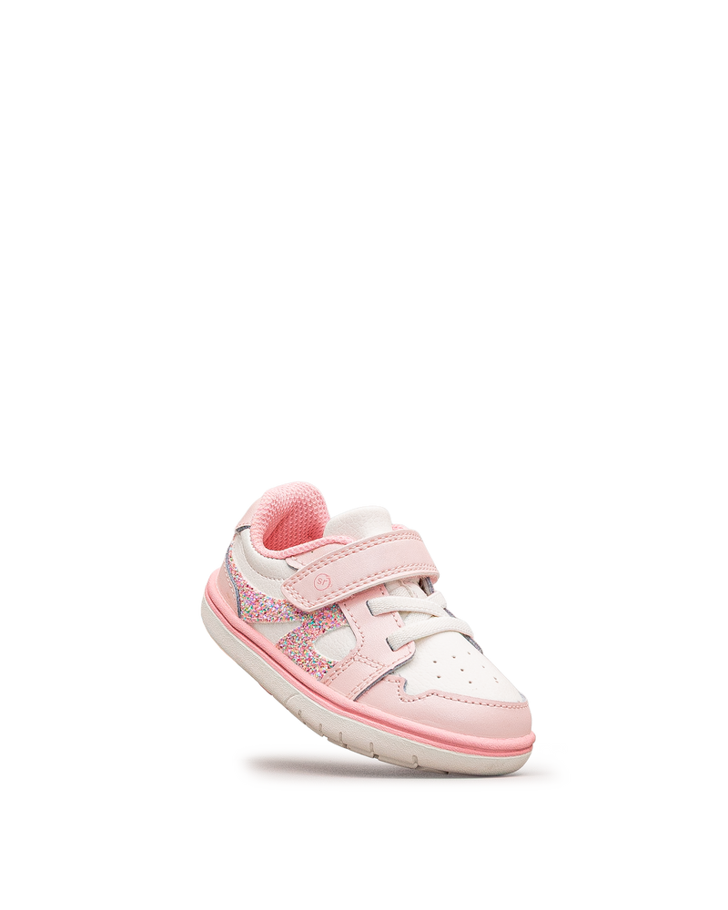 Ces chaussures rose et argent offrent confort et éclat pour accompagner les premiers pas des enfants. Leur design souple et sécuritaire favorise un mouvement naturel. Faciles à enfiler grâce à leur fermeture pratique, elles sont parfaites pour un usage quotidien. Avec Stride Rite, chaque pas est à la fois stylé et confortable.