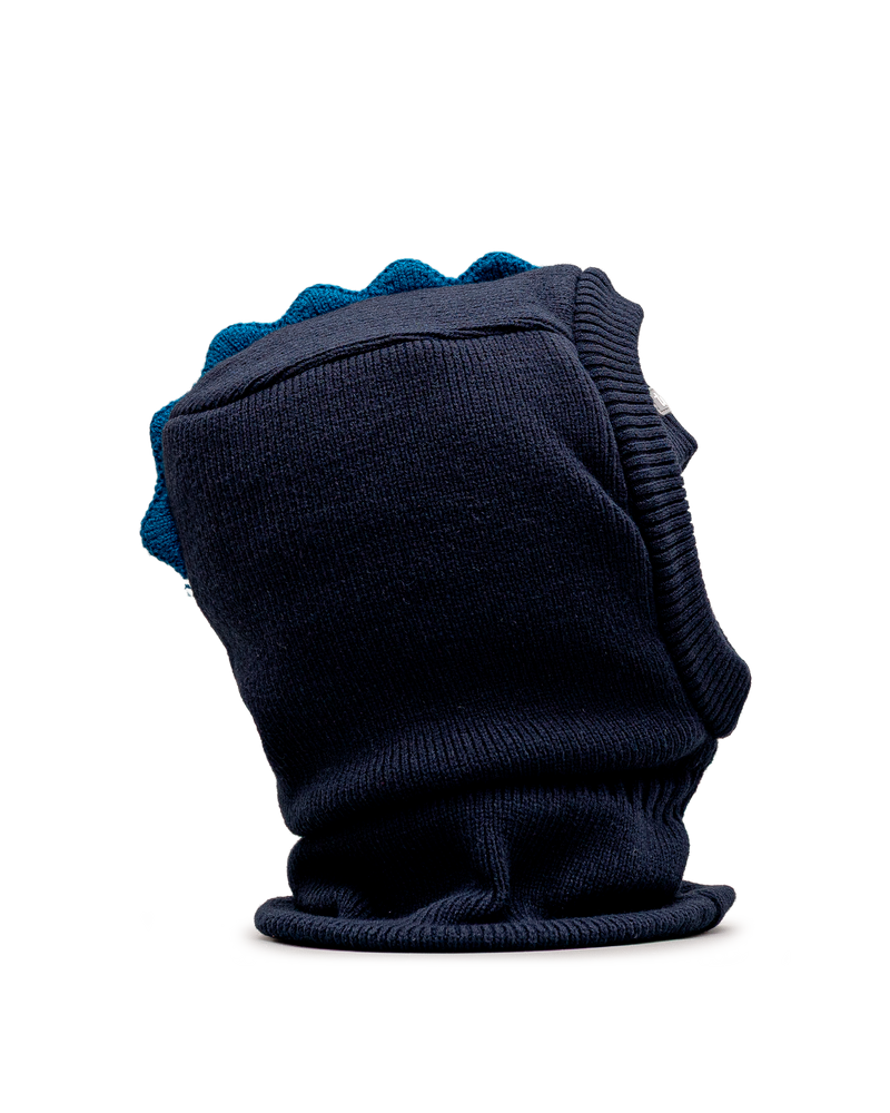 Cette cagoule marine avec motif dinosaure combine chaleur et amusement pour les journées froides. Son tricot extensible épouse confortablement la tête et le cou. Facile à enfiler, elle assure une protection complète contre le vent et la neige. Un modèle Tutu ludique avec ses petites pointes de dino pour garder les enfants bien au chaud tout l'hiver.